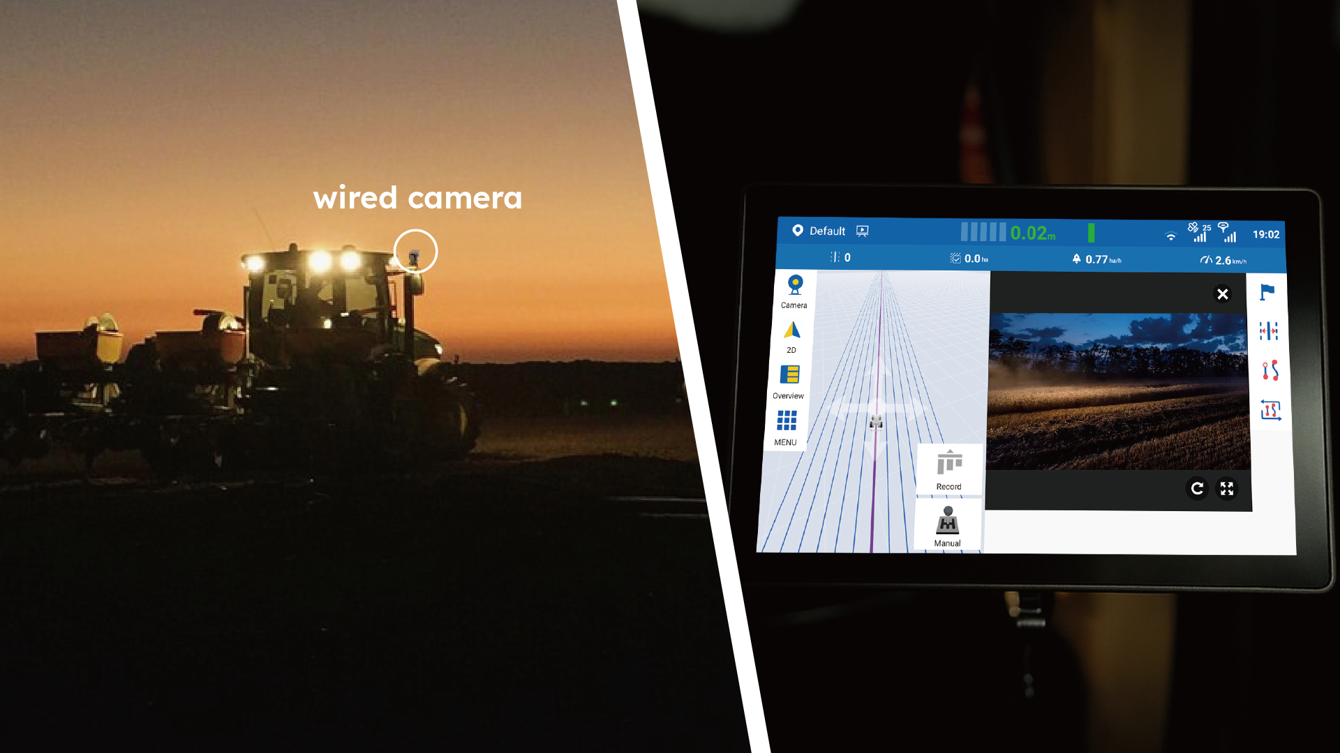 F200 Max supporta telecamere sia cablate che wireless, offrendo agli operatori una visione completa dell'attrezzo e dell'ambiente circostante. Dalle capezzagne strette al lavoro notturno, visibilità e sicurezza sono sempre garantite.
