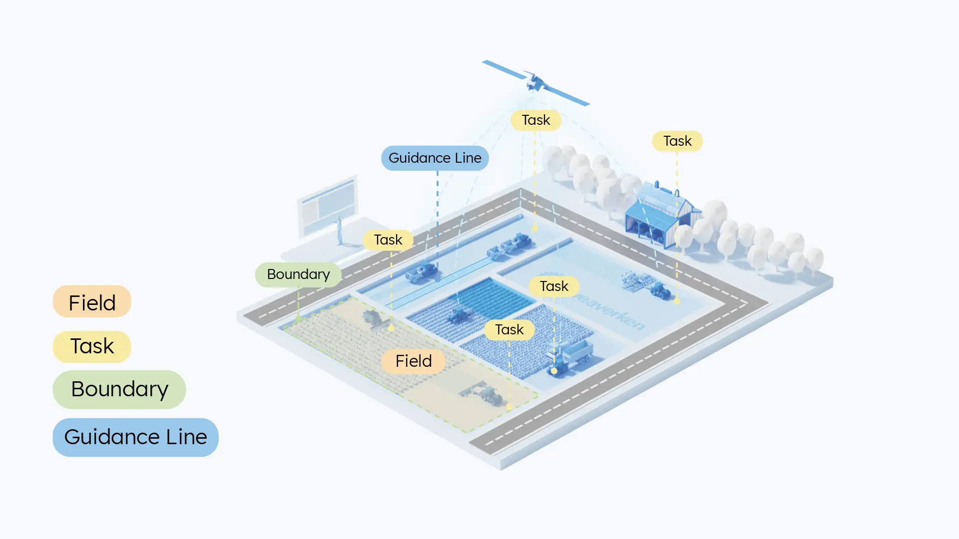 Dalla pianificazione al completamento, F200 Max mantiene i tuoi dati sincronizzati. Utilizza Field Management* per raggruppare linee, confini e dati delle attività con un campo specifico. Rimani connesso durante l'operazione tramite il Farm Management System per un monitoraggio in tempo reale, sempre e ovunque. Al termine, esporta facilmente i dati chiave, come mappe di prescrizione e gruppi di linee, tramite GIS Data Transfer, su qualsiasi terminale o piattaforma.